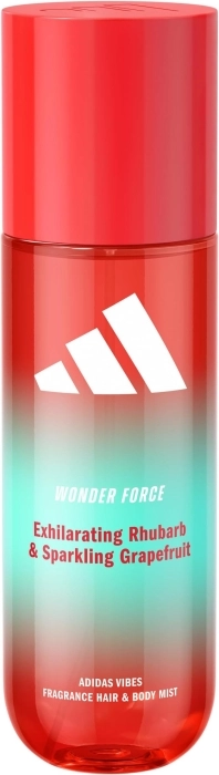 Rocía el aroma por todo tu cabello y cuerpo y mejora tu estado de ánimo con los aromas en spray de adidas El aroma en spray para cabello y cuerpo Vibes Wonder Force ha demostrado que te hace sentir positivo. Con notas de ruibarbo estimulante y pomelo chispeante.