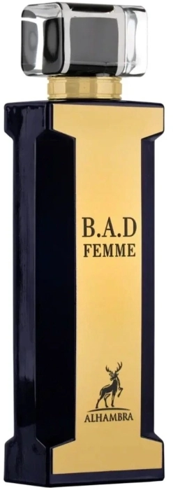 Alhambra B.A.D. Femme es un eau de parfum para mujer lanzado en el año 2000 por la marca Alhambra de los Emiratos Árabes Unidos. Pertenece a la clasificación del mercado masivo y presenta un carácter floral-oriental. Está diseñado para mujeres audaces e independientes que no temen ser el centro de atención. En Alhambra B.A.D. Femme, los perfumistas han capturado hábilmente la esencia de una verdadera mujer, que puede ser fuerte, carismática, suave y misteriosa todo a la vez.
