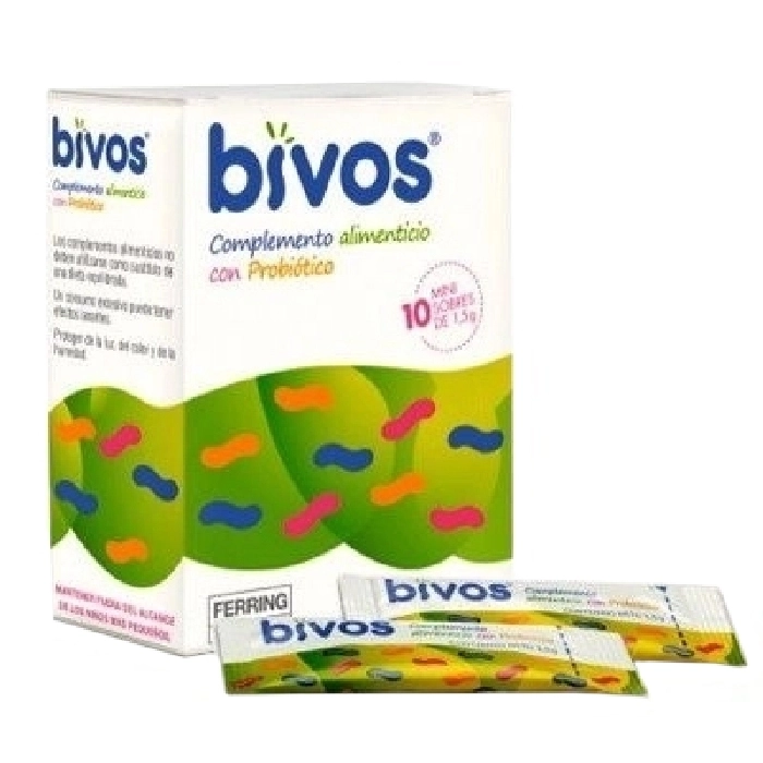 Bivos 10 minisobres 15 g es un producto único y efectivo que te proporciona los beneficios de los probióticos en un formato conveniente y fácil de usar Cada mini sobre contiene una potente dosis de 6000 millones de probióticos vivos de Lactobacillus rhamnosus GG, una cepa probiótica altamente reconocida por sus propiedades beneficiosas para la salud Los ingredientes de Bivos 10 minisobres 15 g incluyen agentes de carga como el manitol y la inulina, que aseguran una distribución uniforme de los probióticos en cada sobre Además, cuenta con dióxido de silicio como antiaglomerante, lo que garantiza una fácil disolución del contenido Para su consumo, se recomienda tomar de 1 a 2 mini sobres al día Puedes abrir el sobre y verter el contenido en un líquido o comida a temperatura ambiente, o incluso tomarlo directamente del sobre La elección es tuya, pero siempre asegúrate de seguir las instrucciones de uso recomendadas por Izessa Empresarial Es importante tener en cuenta algunas precauciones y advertencias No debes superar la dosis diaria recomendada y los complementos alimenticios no deben ser utilizados como sustitutos de una dieta equilibrada Un consumo excesivo puede tener efectos laxantes, por lo que es necesario mantener el consumo dentro de los límites recomendados Asimismo, recuerda mantener el producto fuera del alcance de los niños más pequeños y conservarlo en un lugar protegido de la luz, el calor y la humedad Bivos 10 minisobres 15 g es tu aliado ideal para mantener un equilibrio óptimo de tu microbiota intestinal Aprovecha los beneficios de los probióticos de alta calidad en un formato práctico y cómodo ¡Cuida tu salud intestinal con Bivos!.