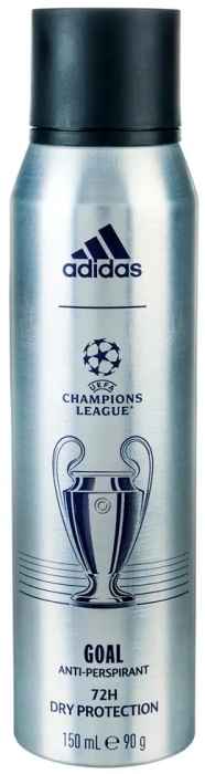 Desodorante en spray Adidas GOAL Dry Protection Anti-Transpirant 72H (150 ml) que proporciona protección eficaz contra el sudor y el mal olor hasta por 72 horas. Su fórmula de secado rápido ayuda a mantener la piel seca, fresca y cómoda durante todo el día. Ideal para un estilo de vida activo, con un aroma fresco y deportivo y formato spray práctico para una aplicación rápida y uniforme. ⚽