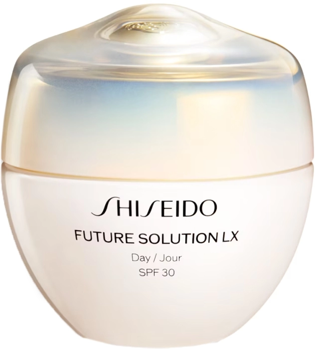 La crema de día Future Solution LX Total Protective de Shiseido es un tratamiento hidratante indicado para todo tipo de piel. Está formulada para mujeres que buscan combatir los signos del envejecimiento. Esta crema se basa en más de 40 años de investigación genética y contiene una mezcla de ingredientes botánicos japoneses que fortalecen y protegen la piel de factores de envejecimiento diario. Incorpora el LonGenevity Complex, que potencia la resistencia y luminosidad de la piel. Las pruebas dermatológicas muestran que tras 8 horas, la piel duplica su nivel de hidratación, y después de una semana, el 80% de las usuarias notaron su piel más luminosa. Además, el 92% de las participantes percibieron su piel más lisa inmediatamente después de la aplicación. Entre sus ingredientes se encuentran el extracto premium de sansho y el extracto de té verde, que estimulan la capacidad de defensa de la piel, así como el extracto de Scutellaria Baicalensis y un polvo que potencia la penetración de la luz roja, ayudando a la piel a adaptarse a su entorno. Se sugiere aplicar la crema por la mañana como último paso de la rutina de tratamiento, utilizando una espátula para tomar la cantidad adecuada y extenderla suavemente por el rostro.
