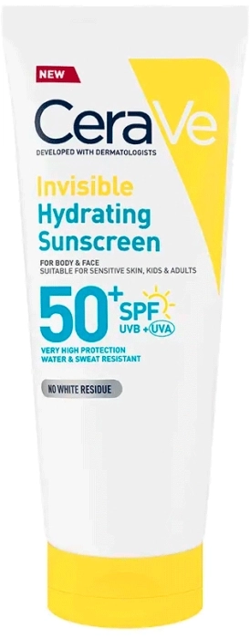 La Loción Protectora Invisible Hidratante SPF 50 CeraVe proporciona una alta protección UVB + UVA en una fórmula ligera e hidratante, siendo la protección solar que querrás usar. Esta fórmula, desarrollada con dermatólogos, contiene 3 ceramidas esenciales y tecnología MVE, protege del daño de los rayos UV, fortalece la barrera de la piel y sella la hidratación 24 horas*.