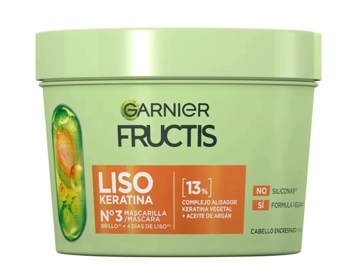Liso Keratina, Mascarilla Nº3 para Cabello Encrespado 370 ml de Fructis.