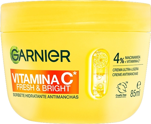 La nueva Crema Sorbete Vitamina C* Fresh&Bright Hidratante Antimanchas ha sido formulada para hidratar la piel hasta por 48 horas mientras ayuda a mejorar visiblemente su luminosidad.