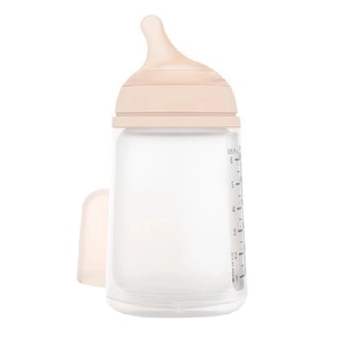 La tetina de este biberón tiene un ángulo inclinado y una forma plana y simétrica, lo que permite una succión más cómoda y natural para el bebé.